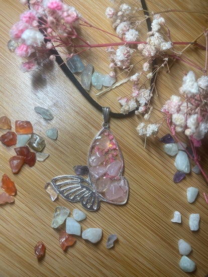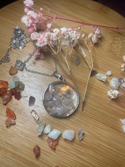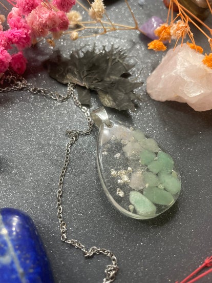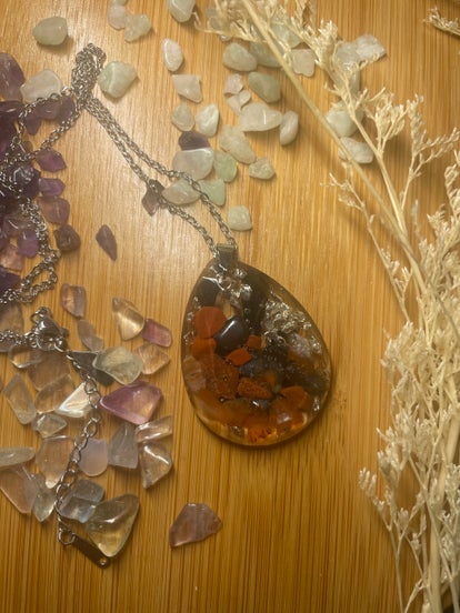 Des bijoux réalisés en epoxy intégrant les vertues des pierres naturelles,la chromatotherapie et l énergie Reiki avec laquelle je poserai une intention sur chacun de ces bijoux.